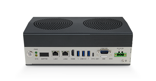 | I/O接口 | 1 × 电源开关 2 × RJ45 2.5G LAN 1 × QSFP28(可扩4*25G 光模组) 3 × USB 3.0 2 × COM( 非 全 信 号、1*DB9 形 式 、RS-232/422/485 可调) 4 × CAN(1*DB9 形式,需定制) 2 × 指示灯(PWR、SYS) 1 × Recovery 按键 1 × OTG(Type-C) 1 × 3P 电源接口 1 × HDMI 1 × Debug 按键 1 × Nano-SIM |